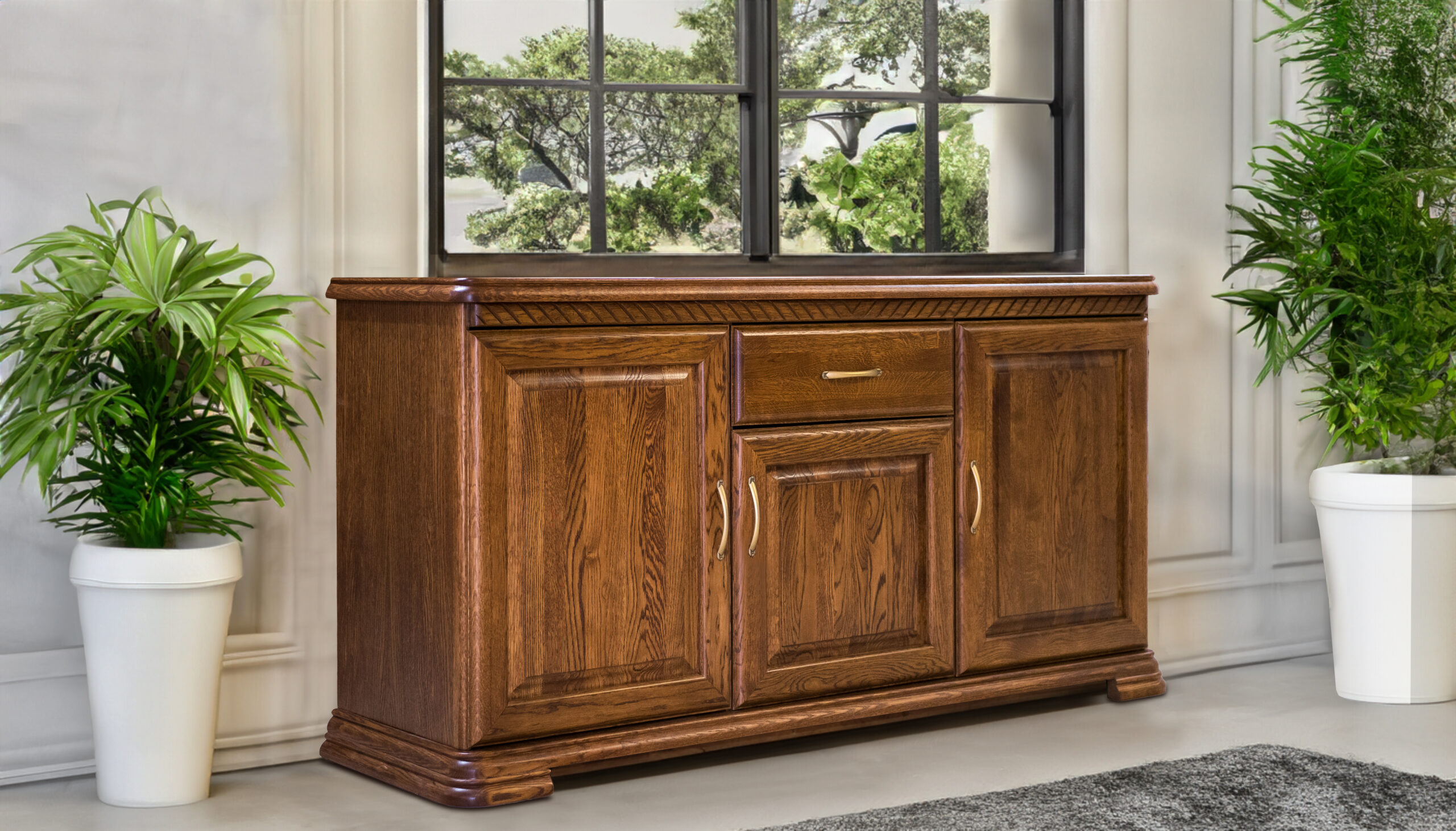 Duża komoda Classic 2DS1B1 to doskonałe uzupełnienie każdej stylowej sypialni, a także salonu. Solidnie wykonana, z najwyższej jakości drewna z elementami fornirowanymi z pewnością posłuży wiele lat. Komoda charakteryzuje się ponadczasowym designem, który zachwyca swoją prostą formą, dzięki której świetnie dopasowuje się do wnętrz, zarówno tych tradycyjnych jak i bardziej nowoczesnych.