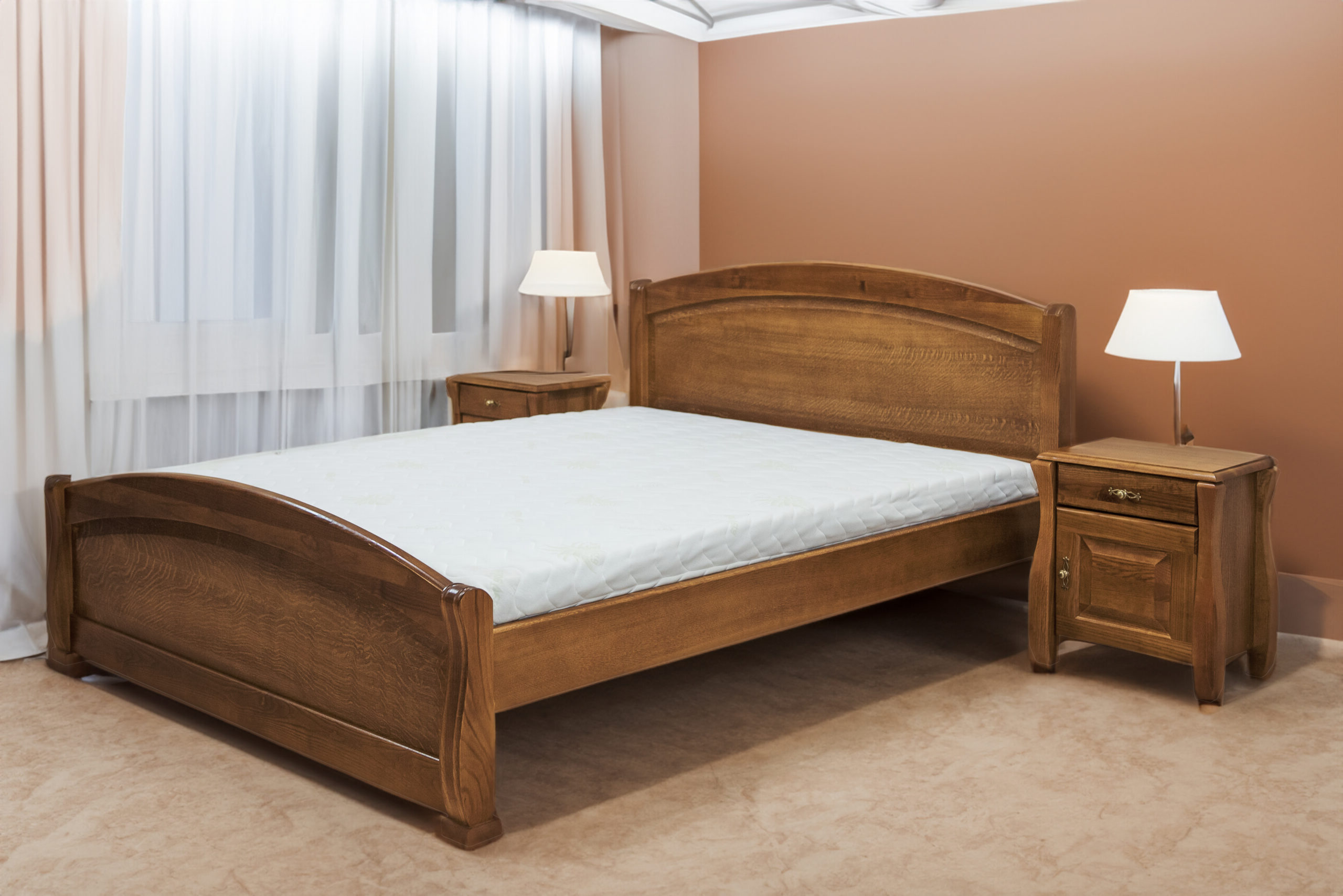 Drewniane łoże sypialniane o królewskim stylu, da poczucie elegancji i szyku. Klasyczne wykończenie wezgłowia sprawia, że łóżko sprosta nawet najbardziej wygórowanym oczekiwaniom klientów.