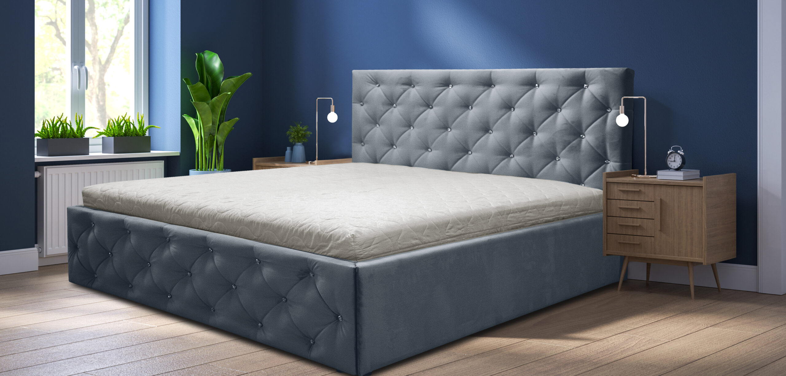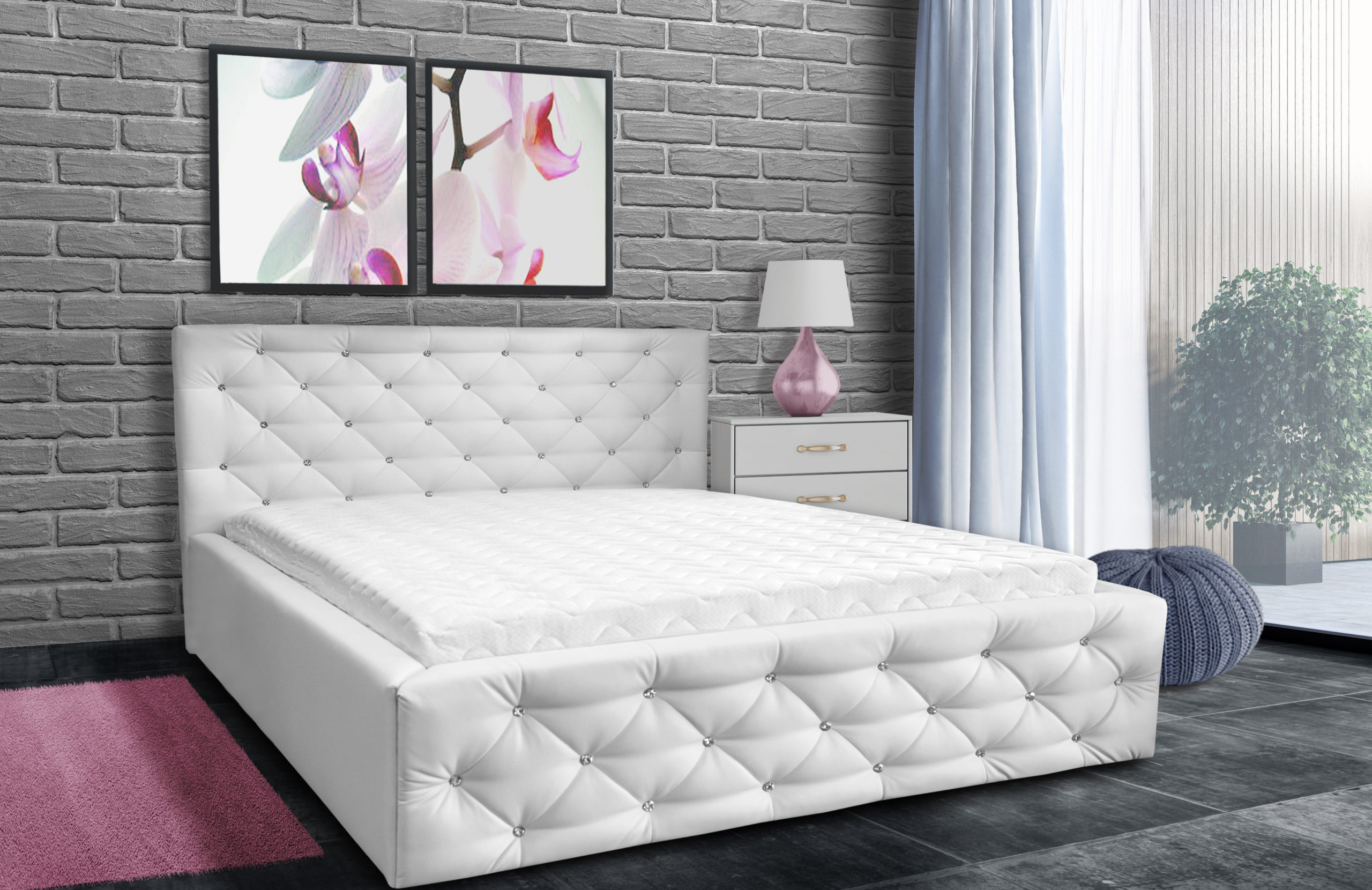 Łóżko do spania Pik G Karo 200/200 to propozycja dla miłośników wykwintnego i eleganckiego stylu. Praktyczne oparcie stanowi ochronę ściany przed zabrudzeniem i uszkodzeniem. Co więcej, cechuje się luksusowym wyglądem, który zawdzięcza wystawnemu wykonaniu zagłowia w formie pikowania urozmaiconego kryształkami.